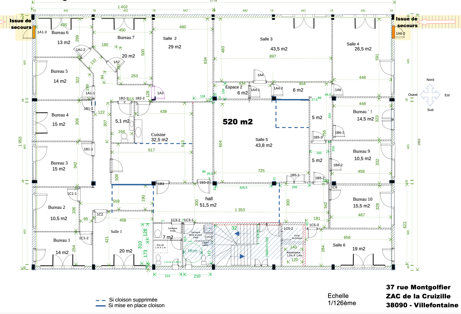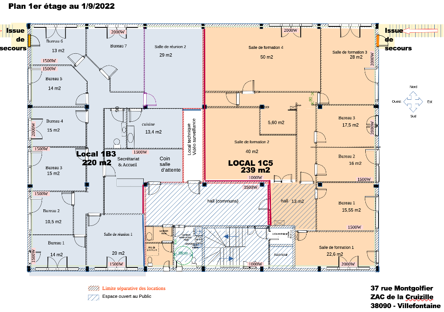 - 10 bureaux dont 2 avec un accès direct par l’extérieur